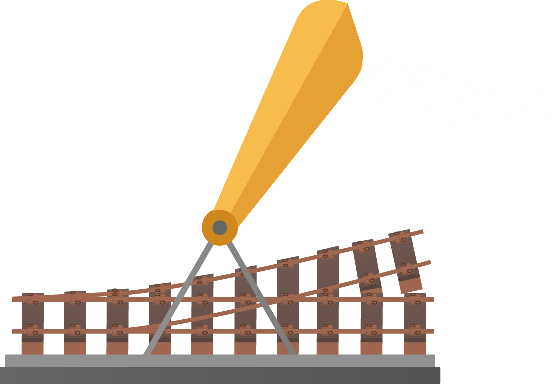 道岔抽換施工流程大致可分成:場地整理—道岔拆除—移除石碴—置入新道岔—置入石碴—調整檢查—完成!透過點擊下方圖式進行兩兩交換,排列出正確的施工順序後,點擊上方按鍵,開始道岔抽換工程,正確回答問題即可通關。